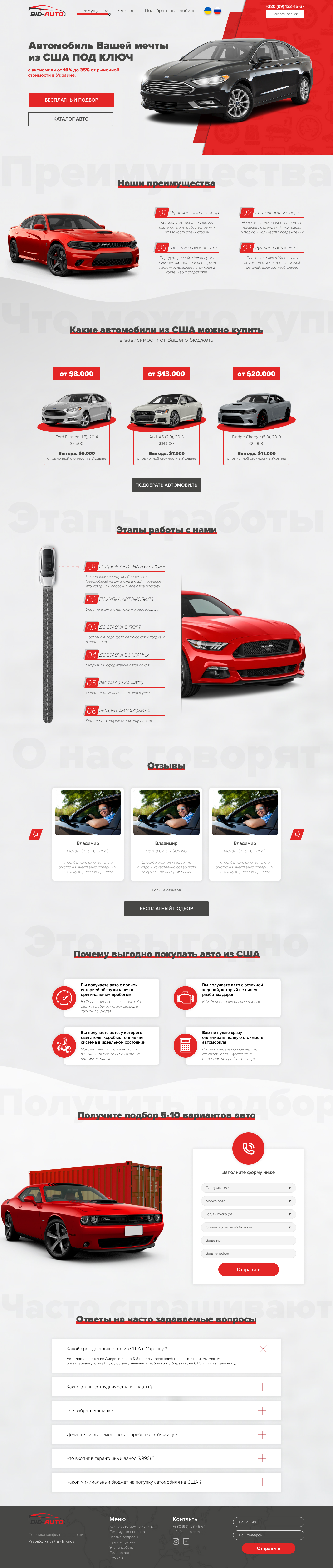 Наши друзья из "bidauto" расширяются, и для новой услуги "Доставка авто из США" понадобился Лендинг. Мы обсудили детали и реализовали все пожелания. На старте работы, вы можете заполнить форму.