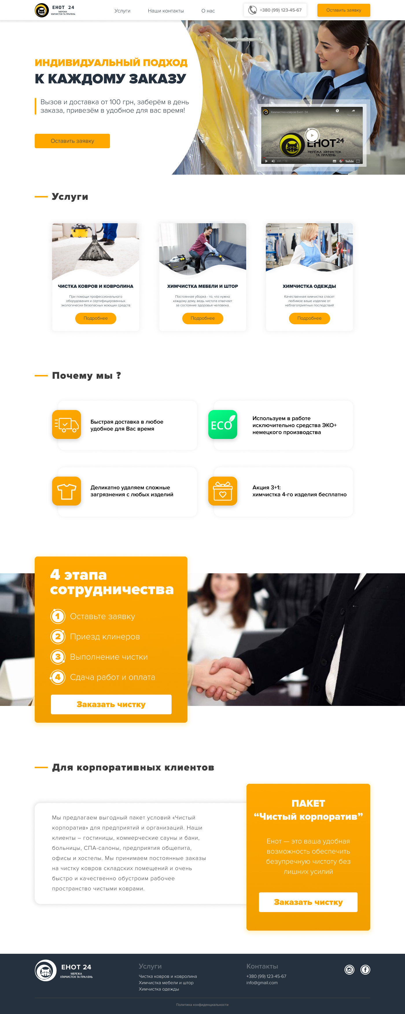 Создание сайта для компании по химчистке ковров и мебели. Изучение сайтов конкурентов компании. Проработка структуры сайта для запуска контекстной рекламы в дальнейшем. Реализация удлиненных посадочных страниц с всплывающими контактными формами. Реализация индивидуального дизайна, подбор и обработка изображений, подбор тематических иконок. Оптимизация сайта перед запуском.